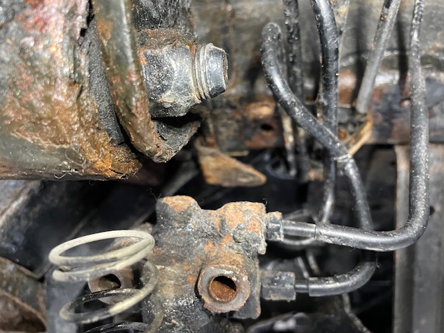 点検した所ブレーキパイプが融雪剤の影響で、錆びてボロボロです